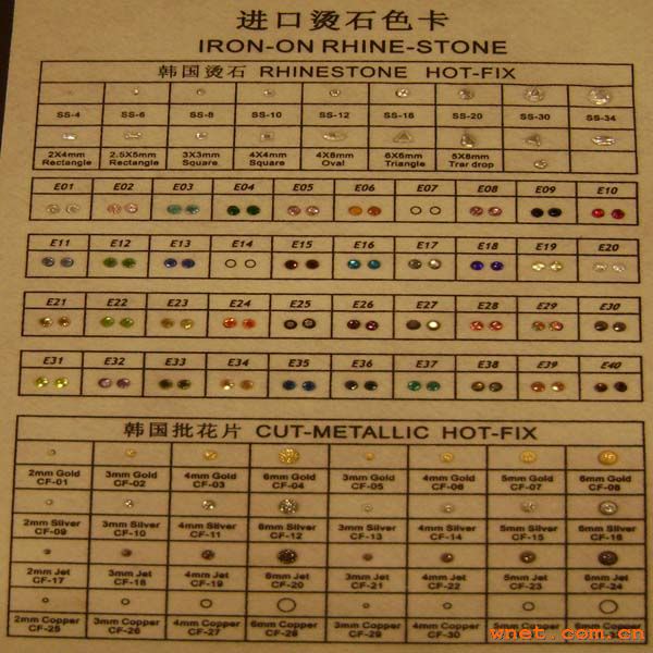 | 您当前位置:产品展厅 / 服装辅料 / 信息 / 烫石色卡 | 【 推荐给好友 】 | ||||||||||||||||||||||||||||||||||||||||