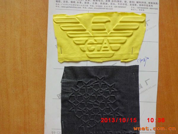 12年的专注一直在不断的完善,针梭织布压凹凸感,背后不灌胶更适合夏装,手感超好,耐各种水洗凹凸感不消,压花部位不会硬邦邦和刮皮肤。各种皮革压凹凸。各种牛仔和休闲裤后袋压凹凸,大面积针织压凹凸立体感更强。13316030339郑生竭诚为您服务,诚州诚信五大洲,我是一个立志做虔诚佛教徒的人,做比说更重要